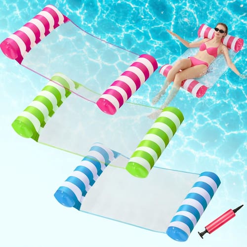 - Durabilidade à prova de verão: feitas de vinil durável, grosso e não tóxico, as redes de água oferecem alta flutuabilidade e suavidade excepcional para conforto duradouro; aproveite horas de diversão sem se preocupar com o uso; também vem com uma bomba manual em