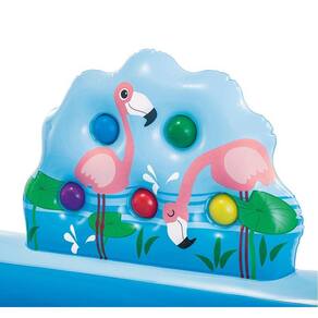 Incluindo um tobogã de água, palma, flamingo, macaco infláveis, e jogo de anel toss e 5 bolinhas que entram na parede