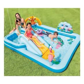 Dimensões: 2,44m comprimento x 1,98m largura x 0,71m altura Capacidade: 493 Litros de pura alegria Idade Recomendada: Ideal para crianças de 3 a 12 anos. Material: PVC de alta resistência, seguro e durável. Acessórios Inclusos: 1 Piscina Playground e 1 adesivo de reparo. Marca: Não Informado