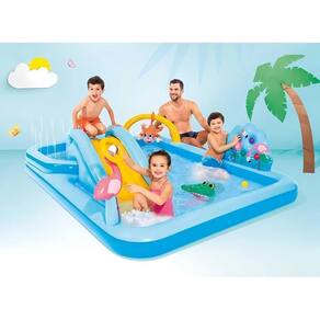 Dimensões: 2,44m comprimento x 1,98m largura x 0,71m altura Capacidade: 493 Litros de pura alegria Idade Recomendada: Ideal para crianças de 3 a 12 anos. Material: PVC de alta resistência, seguro e durável. Acessórios Inclusos: 1 Piscina Playground e 1 adesivo de reparo. Marca: Não Informado
