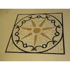 Especificações técnicas do mosaico: Feito com pedras - Mármores e granitos de todo o e importados da Europa e Ásia - para obter todas as cores desejadas em pedras naturais; Vem todo montado sobre tela, só colocar conforme manual de colocação, Resistência e Durabilidade em área interna e externa; Espessura de 10 mm Mesma espessura do porcelanato ou piso cerâmico Liso e agradável para uso diário; Mosaico feito integralmente à mão com técnica do mosaico romano;