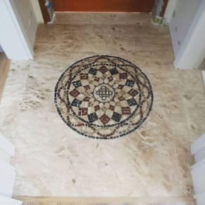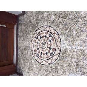 Especificações técnicas do mosaico: Feito com pedras - Mármores e granitos de todo o Brasil e importados da Europa e Ásia - para obter todas as cores desejadas em pedras naturais; Vem todo montado sobre tela, só colocar conforme manual de colocação, Resistência e Durabilidade em área interna e externa; Espessura de 10 mm Mesma espessura do porcelanato ou piso cerâmico Liso e agradável para uso diário; Mosaico feito integralmente à mão com técnica do mosaico romano;