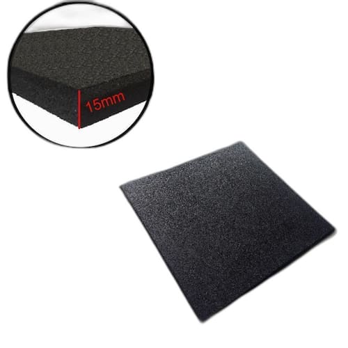 Piso Emborrachado para aparelhos de academia e peso de cross 50x50 - 15mm PRETO Piso de Borracha Anti Impacto - 50cm x 50cm x 15mm Piso de Borracha é destinado a receber alto impacto e proteger o piso abaixo. Os 15mm garantem que ao largar um peso livre o piso que se encontra abaixo não seja danificado. Piso de Borracha ideal para: Áreas de Pesos Livres em Box de Cros; Centro de Treinamento Funcional; Academias Convencionais; Levantamento de Peso; e Playgrounds Infantis. Especificações: - O Produto é Novo; - O Metro Quadrado m é composto por: 4 placas de 50 cm x 50 cm x 15 mm de borracha; - O peso por placa é de aproximadamente 3,5kg, totalizando 14kg por m; - Completamente lavável; - Recortável, se adaptando à todas as curvas e quinas de seu espaço. Marca: Gh Sports Ean: 7892090844045