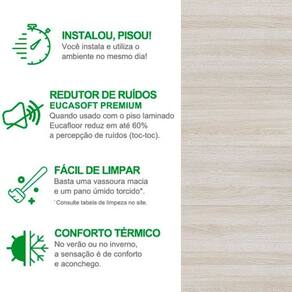 Piso Laminado Melamínico Flutuante de Alta Resistênca. Bonito, prático e fácil de limpar. A opção ideal para residências e área comercial de baixo tráfego. Os pisos laminados Eucafloor Prime Click possuem alta resistência e são desenvolvidos com técnologia específica e, por isso, oferecem aos consumidores uma série de vantagens. Tem padrões inovadores e 7 mm de espessura, além de 12 anos de garantia residencial e 2 anos comercial. São compostos por camadas diferentes, cada qual com uma determinada função.A camada superior dos pisos laminados Eucafloor é composta por um filme cristalino de celulose com partículas de óxido de alumínio e impregnado com resina melamínica. Responsável pela alta resistência a riscos e à abrasão, sua baixa porosidade evita a absorção de líquidos.