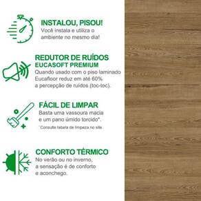 Recomendações de Uso, Manutenção e Limpeza: A limpeza deve ser feita com aspirador de pó (exceto aspiradores com tubo de sucção que raspam o piso) ou vassoura de cerdas macias e um pano úmido bem torcido em solução de produtos domésticos de limpeza isentos de cera ou silicone. Eventualmente (uma vez por semana), a limpeza poderá ser feita diluindo uma ou duas tampas do Pratice Limpador de Laminados ou detergente neutro em 1 litro d'água. Molhe o pano nesta mistura, torça-o bem e aplique sobre o piso.Nunca utilize material cortante ou abrasivo, cera ou enceradeiras elétricas, esponja de aço, lixa ou produtos à base de silicone