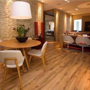 O fabricante não indica aplicação de piso laminado em áreas externas ou que molham facilmente.
