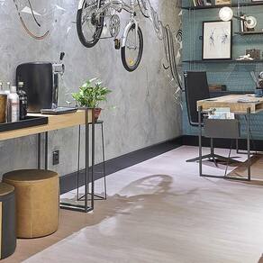 A cor Sbiancato realça veios sutis em tonalidade clara, ampliando a sensação de luminosidade em salas, quartos, corredores e escritórios, e combinando com diferentes estilos de mobiliário.