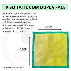 Eleve a acessibilidade e segurança em seu espaço com o Kit 10 Pçs Piso Tátil PVC 25X25 Alerta Amarelo Adesivado. Este conjunto de 10 placas de piso tátil em PVC com adesivo na cor AMARELO é a resposta ideal para aprimorar a acessibilidade em ambientes públicos. Cada kit traz consigo 10 placas de piso tátil, padronizadas em 25x25cm, seguindo as normas técnicas da ABNT NBR 9050 para acessibilidade em edificações e espaços públicos.