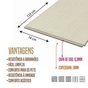 Você não precisa se preocupar se o seu pet fazer xixi fora do lugar de costume! Acabamento: Texturizado Acompanha Ficha Técnica: Não Acompanha Manual de Instalação: Não Ambiente Principal: Quarto Ambientes Recomendados: Área Comercial/Área Residencial Aparência: Madeira Capa de Uso de PVC: 0,03 mm Comprimento: 122 cm Conforto térmico: (4) Médio - Alto Cor: Mont Blanc Cor do Produto: Mont Blanc Cor Predominante: Cinza Escala de Brilho: Acetinado Largura: 18 cm Local de Uso: Corporativo, Educação Manual de Montagem e Instalação: https://product-hub-prd.madeiramadeira.com.br/537096969/documents/384fd841-0400-4e2b-9dda-94c66adb42203076730654517527610905797.pdf Marca: Formaco Decor m² por caixa: 2,196 m² Onde Instalar: Médio Tráfego Origem do Produto: Nacional País de Origem: Importado Peso: 1,75 kg/m² Proteção Superficial: Sim Tipo de Instalação: Clicado Tipo de Piso Vinílico: Régua Tom de cor: Claro Valorização do imóvel: (4) Médio - Alto Marca: Não Informado