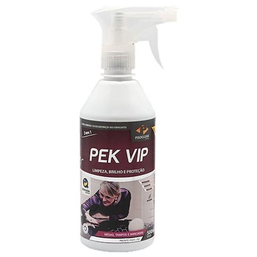 Pek Vip é fácil e prático de ser usado pois não necessita de enxágue após a aplicação. Com o uso frequente é possível aumentar o brilho e a proteção contra manchas superficiais e desgastes pois as partículas hidro/oleofugantes de Pek Vip atuam diretamente nas superfícies tratadas, deixando um suave aroma de limpeza. Este produto é ideal para limpar profundamente mesas, tampos e bancadas em mármores, granitos ou similares polidos e lustrados. Ambientes: Áreas internas, Áreas externas. Revestimentos: Mármores, Granitos, ou similares polidos e lustrados Resolve: Falta de limpeza, proteção e brilho no revestimento Benefícios: Facílimo uso: sem necessidade de enxágue. Promove proteção contra eventuais desgastes no revestimentos. Suave aroma. Atenção: Nunca utilize acessórios abrasivos sobre superfícies polidas. 1. Pulverize o produto diretamente sobre a superfície. 2. Espalhe o produto uniformemente com um pano. 3. Aguarde entre 3 a 5 minutos e lustre com uma flanela de microfibra (ou similar). Dica: Repita o processo se julgar necessário. Pronto :) Apresentação: 500ml Validade: 24 meses após fabricação Pronto para usar O frasco rende até 250m² Comprimento: 10cm Largura: 20cm Altura: 10cm