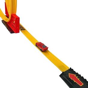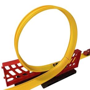 Com 1,04 metro de comprimento e 29cm de altura, o brinquedo conta com um looping radical e rampas que desafiam os carrinhos a fazerem manobras incríveis.