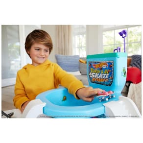 Prepare-se para as manobras mais radicais com o Hot Wheels Skate Flush & Go Skate Bowl! Este conjunto único em formato de vaso sanitário oferece uma variedade de superfícies para andar de skate, incluindo um vaso sanitário gigante e curvo, 2 rampas de papel higiênico, um trilho de moagem e uma rampa na parte de trás, proporcionando diversão sem fim.