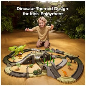 O Conjunto de Trilhos de Trem de Dinossauro TUMAMA é um brinquedo de pista que inclui 281 peças, como 240 peças de trilhas flexíveis, 2 carros operados por bateria, 1 carro dinossauro, 1 carro de brinquedo locomotiva, 2 carros de minas, 4 figuras de dinossauros, 1 túnel de dinossauro, 1 ponte, 1 rampa, 1 porta, 1 garfo em forma de Y, 2 macacos e 8 árvores. O design avançado permite que as crianças criem seu próprio reino de dinossauros e experimentem livremente o jogo de corrida de carros de dinossauros. Os dois carros operados por bateria possuem luzes piscantes que são acionadas automaticamente em azul e vermelho enquanto estão em movimento. O túnel de dinossauro destacável pode ser utilizado para conectar a pista ou ser transformado em um carro de brinquedo de dinossauro para as crianças se divertirem. Este conjunto é adequado para crianças de 3 a 7 anos e é um presente perfeito para meninos e meninas.
