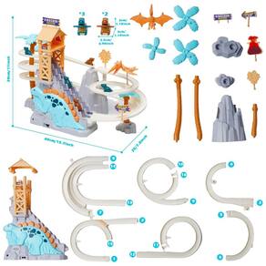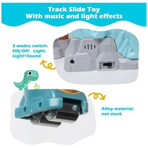 Este conjunto de pista deslizante é um brinquedo divertido em forma de dinossauro que inclui 5 pequenos dinossauros e uma escada dupla para subida. A pista pode ser convertida no meio do caminho e tem a função de saltar para frente. O brinquedo também vem com um botão liga desliga de música divertida.
