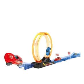Contém: 1 carro, 2 rampas, 2 seções de pistas retas, 1 base looping, 2 seções de pistas curvas(looping), 1 portal chegada, 1 placa redonda(partida), 1 placa retangular de orientação sentido, 2 placas laterais de sinalização e 2 conjuntos de etiquetas.