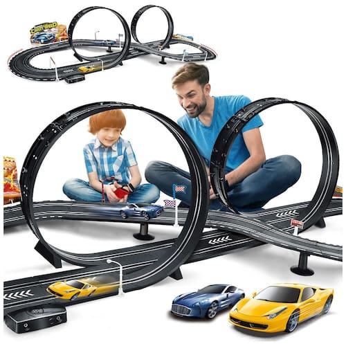 Este conjunto de pista de corrida de caça níqueis elétrico inclui 2 carros de cores diferentes, sendo perfeito para pilotos iniciantes e crianças mais novas desenvolverem habilidades de corrida em uma velocidade mais lenta.