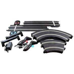 Este conjunto é perfeito para todos os níveis de habilidade e corridas. Inclui pistas que podem ser facilmente conectadas para alterar o layout em questão de minutos. O conjunto é configurado em um espaço de 4,3 x 6,3 metros.