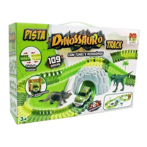 Pista Dinossauro Track Com Tunel 109 Peças - Dm Toys