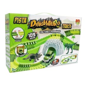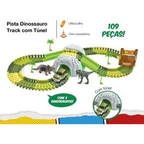 A pista dinossauro track é incrível com acessórios irados, 2 dinossauros e 01 carrinho. É fácil de montar use a criatividade para encaixar as peças de diferentes formas e criar novas pistas. Todas as pistas da linha se encaixam podendo se transformar num grande circuito.