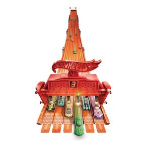 -O Hot Wheels Super Pista de 6 Faixas prepara o palco para corridas espetaculares de 6 carros ao longo de 2.43 metros de pista e conta com luzes e sons realistas!