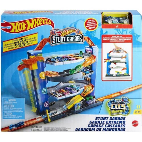 Muita velocidade, manobras e acrobacias com o hot wheels city pista stunt garagem da mattel uma super garagem que permite guardar mais de 20 carros hot wheels escala 1:64 a diversão pode ser maior usando o elevador que leva os carros para os andares superiores Depois, desça até o andar principal para abastecer para a próxima aventura radical A stunt garagem pode ser carregada para todos os lugares através de sua alça, facilitando ainda mai a diversão.