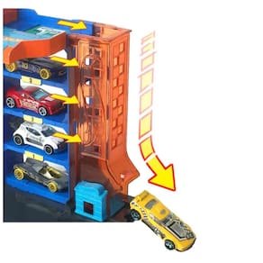 Pista Hot-Wheels City Garagem - Estacionamento Mattel. O Hot Wheels City Downtown Assortment permite que as crianças criem sua própria paisagem urbana carregada de acrobacias e aventuras legais. Cada conjunto joga com o tema inimigo do Hot Wheels City, incorporando elementos que uma criatura pode estar à espreita nas proximidades, apenas esperando para atacar.