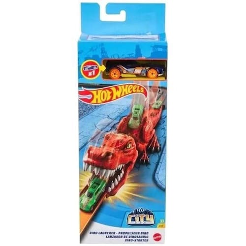 Descrição do produtoTanto o lançador de dinossauros Hot Wheels como o lançador de tubarões representam desafios espetaculares onde as crianças terão de lançar os carros com a força certa, se não quiserem ser apanhadas nas mandíbulas dos seus inimigos.Estes brinquedos também podem ser utilizados para brincadeiras autónomas para se divertirem em menor escala.Especificações TécnicasIdade recomendada: 4+ anosFabricante: Mattel Franquia: Hot Wheels CityModelo: Lançador Nemesis DinossauroREF: GVF42EAN: 887961924350Marca Mattel Ean: 887961924350