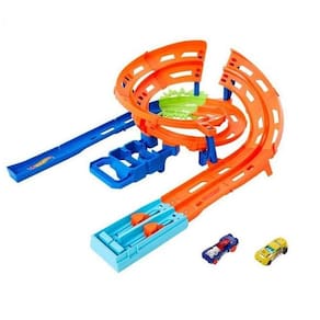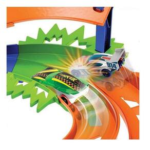 Este conjunto inicia a corrida para descobrir quem será o primeiro a terminar a Corrida Circuito Giro Veloz, correndo com dois carros Hot Wheels em pistas lado a lado, fazendo acrobacias em um salto mortal e escapando da zona de colisão! Esse clássico conjunto de pistas Hot Wheels traz toda a ação e a diversão das corridas e acrobacias e inclui dois veículos em escala 1:64 para começar a correr assim que sair da caixa. O conjunto se dobra ao meio para um armazenamento conveniente, e a alça facilita o transporte. Guardar os carros em locais designados na alça ajuda a manter tudo em um só lugar. As cores e as decorações podem variar.