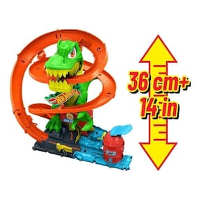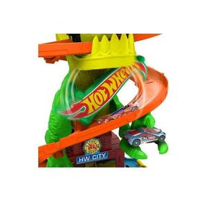 Você pode enfrentar um T-Rex faminto que atacou o quartel de bombeiros da Hot Wheels City com um caminhão de brinquedo em escala 1:64 O conjunto apresenta um dinossauro nêmesis em grande escala que tem olhos que giram toda vez que os carros passam até que ele seja nocauteado Lançar os carros com força suficiente gira os olhos e arranca os dentes do dinossauro, para que ele seja comido e depois expulso Você pode recarregar e reiniciar, mas dessa vez você é desviado pelo posto de combustível. É melhor abastecer para a próxima corrida Fabricante: Mattel Ref.:JBM73 Código Barras:194735264186 Idade recomendada: Acima de 3 Anos Dimensões da Embalagem AxLxC : 25X45X10cm do Vendedor: 7 dias do Fabricante: 3 meses Homologação Inmetro: IP-BRI-1465/2021-03 Ean: 194735264186