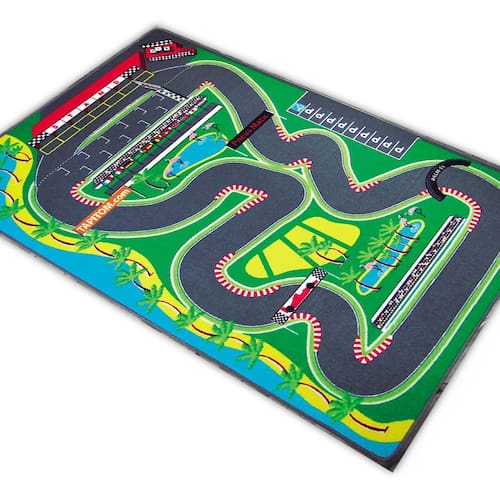 Pista Para Carrinhos De Corrida Com Velocidade 1,8X1,2M Verde Importante: - não é um tapete peluciado e nem emborrachado - as pistas não acompanham carrinhos - pode sofrer pequenas alterações de cores em relação a tela, tanto quanto pequena variação nas medidas. Medida total: 180x120cm Material: lona vinilíca 340g bem resistente, produto limpeza fácil com pano úmido Imagens meramente ilustrativas