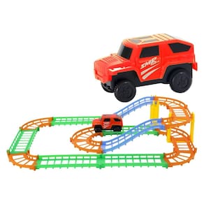 Confeccionado em material plástico. Com um super carinho movido a pilha. Promove interação. Estimula o raciocínio. Fácil de montar. Carrinho alimentado por 1 pilha aa pilha aa não vem inclusa