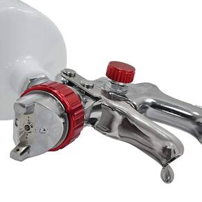 Equipada com um bico de 1,3 mm, a pistola assegura atomização precisa, ideal para acabamentos finos em móveis, peças automotivas e metais. Sua caneca de 600 ml permite trabalhar por mais tempo sem interrupções, enquanto o corpo em alumínio leve e resistente oferece durabilidade e conforto durante o uso.