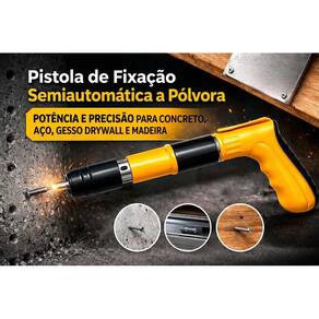 Ferramenta de aplicação Fixação Ação Direta Finca Pinos Drywal Gesso Manual A Ferramenta de aplicação de Fixação Semiautomática a Pólvora é a solução ideal para quem busca potência, precisão e agilidade em trabalhos de fixação . Desenvolvida para aplicações em materiais resistentes como concreto, aço, drywall e madeira, ela garante alto desempenho mesmo nas tarefas mais exigentes. Seu sistema de acionamento por pólvora proporciona uma fixação rápida e eficiente, reduzindo o esforço manual e aumentando a produtividade no canteiro de obras ou uso doméstico avançado. Fabricada com materiais de alta resistência, possui design ergonômico que oferece mais conforto e segurança durante o uso. O kit acompanha acessórios essenciais, permitindo que você comece a utilizar imediatamente. Ideal para profissionais da construção civil, instaladores, montadores e também para quem precisa de uma ferramenta robusta e confiável. Principais BENEFÍCIOS Alta potência para fixações em superfícies duras Sistema semiautomático prático e eficiente Excelente precisão no disparo Reduz esforço físico e aumenta produtividade Design ergonômico com pegada confortável Ideal para e doméstico Aplicações Fixação em concreto Instalação em aço e estruturas metálicas Trabalhos em drywall Montagens em madeira Obras, reformas e instalações gerais Itens INCLUSOS 1 Ferramenta de aplicação de fixação 1 Óculos de proteção 1 Luva de proteção 1 Escova de limpeza Acessórios do kit 1 Maleta resistente para transporte 1. Essa Ferramenta de aplicação funciona em concreto Sim, ela é própria para fixação em concreto, oferecendo excelente desempenho. 2. Pode ser Utilizado em aço e metal Sim, também é indicada para aço e estruturas metálicas. 3. Precisa de energia elétrica Não, o funcionamento é por sistema a pólvora, dispensando energia elétrica. 4. É fácil de usar Sim, possui sistema semiautomático e design ergonômico que facilita o manuseio. 5. Já vem pronta para uso Sim, o kit acompanha acessórios essenciais para começar a utilizar. 6. É indicada para Sim, é ideal para profissionais da construção civil e também uso avançado. 7. Acompanha itens de segurança Sim, acompanha luva e óculos de proteção. Marca: Não Informado