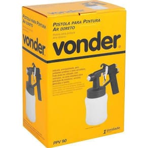 Pistola para pintura mod-ppv90 caneca plastica vonder 6220900000 Conteúdo da embalagem: 1 pistola. Acompanha: 2 bicos de ar intercambiáveis (reto e leque).