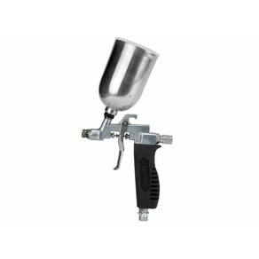 Ferramenta de aplicação Pintura Tipo Gravidade 1.0mm 300ml Caneca Alumínio MS30 Steula A Ferramenta de aplicação para pintura MS 30 da Steula é um equipamento que trabalha com baixa pressão, fazendo com que o desperdício de tinta e a formação de névoa sejam muito pequenos. Por ter um jato com diâmetro relativamente pequeno, ela se torna a melhor opção para quem deseja fazer pinturas em pequenas superfícies como sapatos, cerâmicas, grades e portões, brinquedos, artesanatos, bicicletas, aeromodelismo e pequenos retoques em geral. Dados técnicos: - Pressão de trabalho = 20 a 60 PSI 1,4 a 4,3 kgf / cm2 - Permite regulagem do fluxo de tinta - Permite regulagem da abertura do jato - Entrada do ar = BSP - Peso = 293 g - Volume da caneca 300 cm3 - Bico interno de furo 0,7 mm - Consumo de ar = 2,4 PCM a 60 PSI - Compressor indicado = 2,6 PCM ou maior