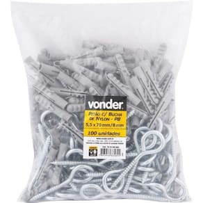 Pitão 5,5X70Mm Zincado Com Bucha 8Mm P-8 100 Peças Vonder