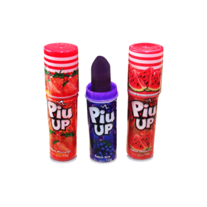 O Piu Up se destaca pelo design único do pirulito, que pode ser encaixado no dedo, tornando a experiência de saborear o doce ainda mais divertida e envolvente para as crianças. Este formato inovador estimula momentos de entretenimento e descontração, perfeito para festas ou brincadeiras.
