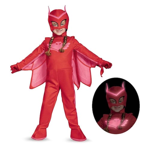 PJ Masks segue as emocionantes façanhas noturnas de três jovens amigos que se transformam em seus alter egos dinâmicos de super-heróis, Cat boy, Owlette e Gekko. Aqui vem Owlette, que é capaz de ver no escuro usando Owl Eyes e voar usando Super Owl Wings, que ela também pode usar para lançar rajadas de ar para enviar oponentes voando para trás. Agora as meninas podem imaginar que eles são seu super-herói favorito Owlette neste traje de luxo muito legal