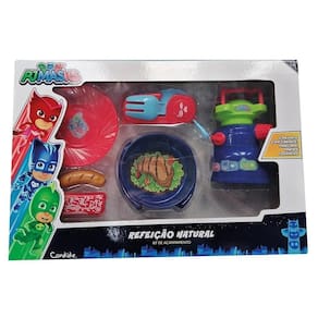 Kit de acampamento composto de fogareiro, marmita, prato e talheres. Utiliza 2 pilhas AA não inclusas.