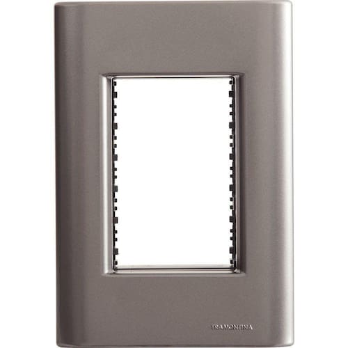Com a placa 3 postos 4x2 Tramontina Giz onix metalizado com suporte você irá garantir um acabamento impecável e cheio de estilo para os ambientes da sua casa. Desenvolvida em termoplástico com sistema modular, ela garante maior facilidade na hora da sua troca ou na troca dos módulos. A placa é metálica e com ela, você compõe espaços mais harmônicos e elegantes!