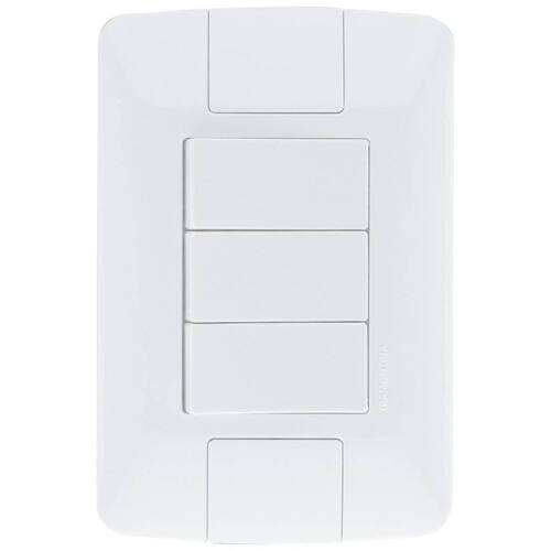 Este produto é composto por uma placa 4x2 e três interruptores simples, permitindo que você controle diferentes pontos de iluminação de forma prática e eficiente. Além disso, o sistema é modular, com o suporte incorporado na placa, oferecendo maior facilidade de instalação.