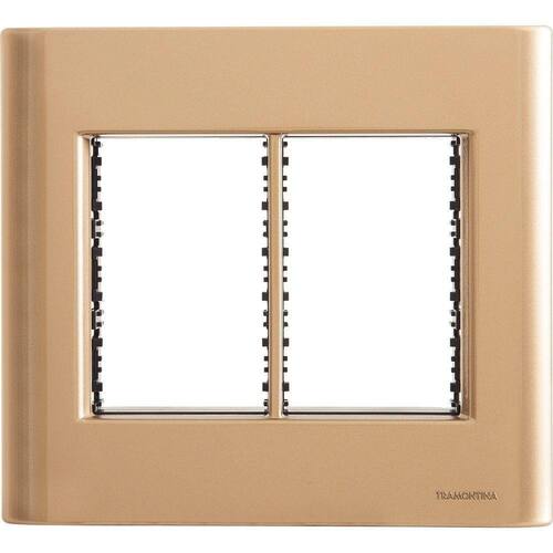 Com a placa 6 postos 4x4 Tramontina Giz ouro metalizado com suporte você tem o item ideal para quem deseja ousar na decoração e deixar sua casa muito mais elegante. Desenvolvida em termoplástico com sistema modular, que garante maior facilidade na hora de trocar os módulos, ela é uma placa que garante um acabamento impecável nas instalações elétricas de tomadas e interruptores. Uma placa diferenciada, ideal para transformar seus ambientes!