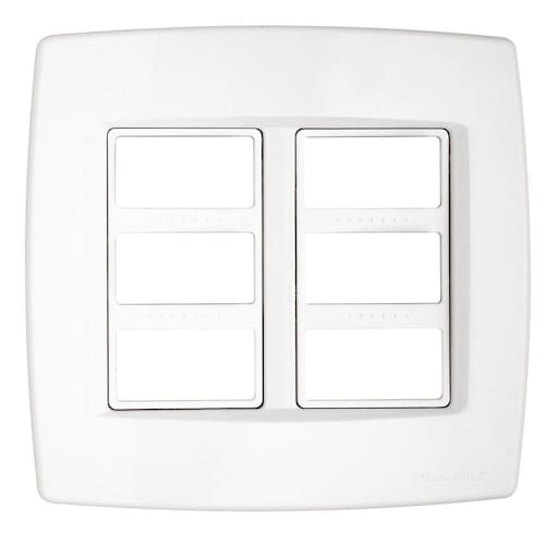 As placas da linha Trii são fabricadas em termoplástico na cor branca. O sistema é modular, em duas peças: placa e suporte, com gradual ajuste entre ambos, proporcionando perfeito acabamento da placa com a parede. Possuem furo oblongo para facilitar a fixação e a regulagem da placa à parede. A fixação não é aparente. A linha Trii é composta por 23 diferentes configurações de placas, sendo 9 configurações nos modelos 4x2 e 14 configurações 4x4. Acompanham suporte e parafusos para a instalação. Orientações . Observações A instalação e segurança: É importante que o produto seja instalado por profissional habilitado. Antes de instalar, desligue a energia elétrica. Características Gerais EAN13 7891435032420 DUN14 17891435032427 NCM 3925.90.90 Peso Líquido 0,0620 kg. Peso Bruto 0,0650 kg. Metragem 0,000210 m³. Dimensões Embalagem (Compr. X Larg. X Alt.) 150x 140x 10 mm. Dimensões Produto (Compr. X Larg. X Alt.) 125x 120x 10 mm. Cor 1 FFFFFF Hexa