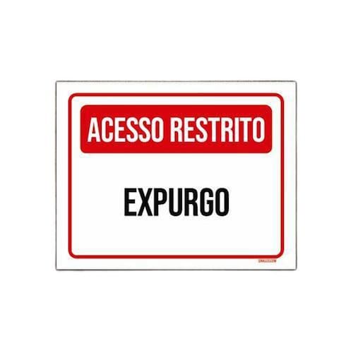 Perguntas frequentes: 1. Qual o material da placa? A Placa Sinalização - Acesso Restrito Expurgo 27X35 é feita com poliestireno de alto impacto PSAI de 2mm.