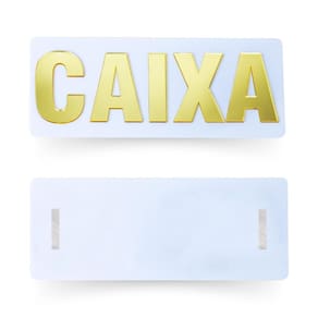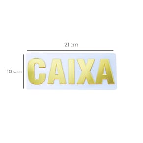 Caraterísticas principais: - feita de acrílico resistente; - letras espelhadas; - sinaliza o caixa em diversos estabelecimentos; - letras visíveis; - design encantador; - material de alta qualidade.