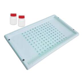 as bandejas são de materiais muito resistentes em abs e podem ser higienizadas com álcool 70.