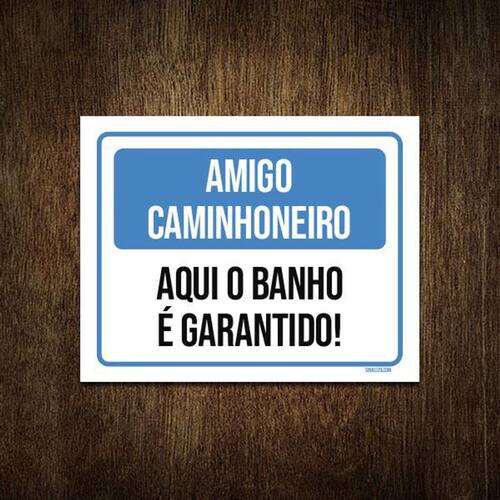 Placa Amigo Caminhoneiro Aqui Banho Garantido 18X23