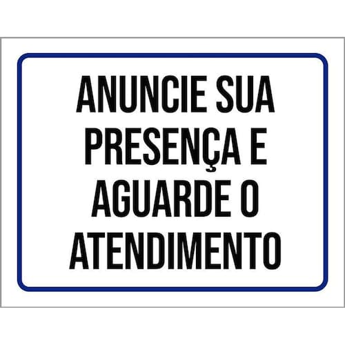 Placa Anuncie Sua Presença Aguarde O Atendimento 36x46 - Informações do Produto: Placas decorativas fabricadas com poliestireno de alto impacto PSAI de 2mm e adesivo vinil automotivo de alta performance. - Medidas: 36cm x 46cm - Fixação: Todas as placas possuem adesivo dupla face para aplicação em qualquer tipo de superfície lisa. de 12 meses e disponibilidade imediata. Marca: Não Informado Ean: 7794883082651