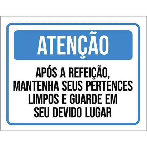 Placa Após Refeição Mantenha Pertences Limpos 36x46 Placas de sinalizaço fabricadas com poliestireno de alto impacto PSAI de 2mm e impressão ultravioleta.