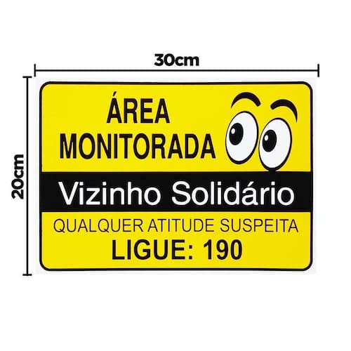 Placa Área Monitorada Vizinho Solidário - S-218/2 F9e Detalhes